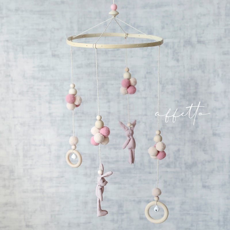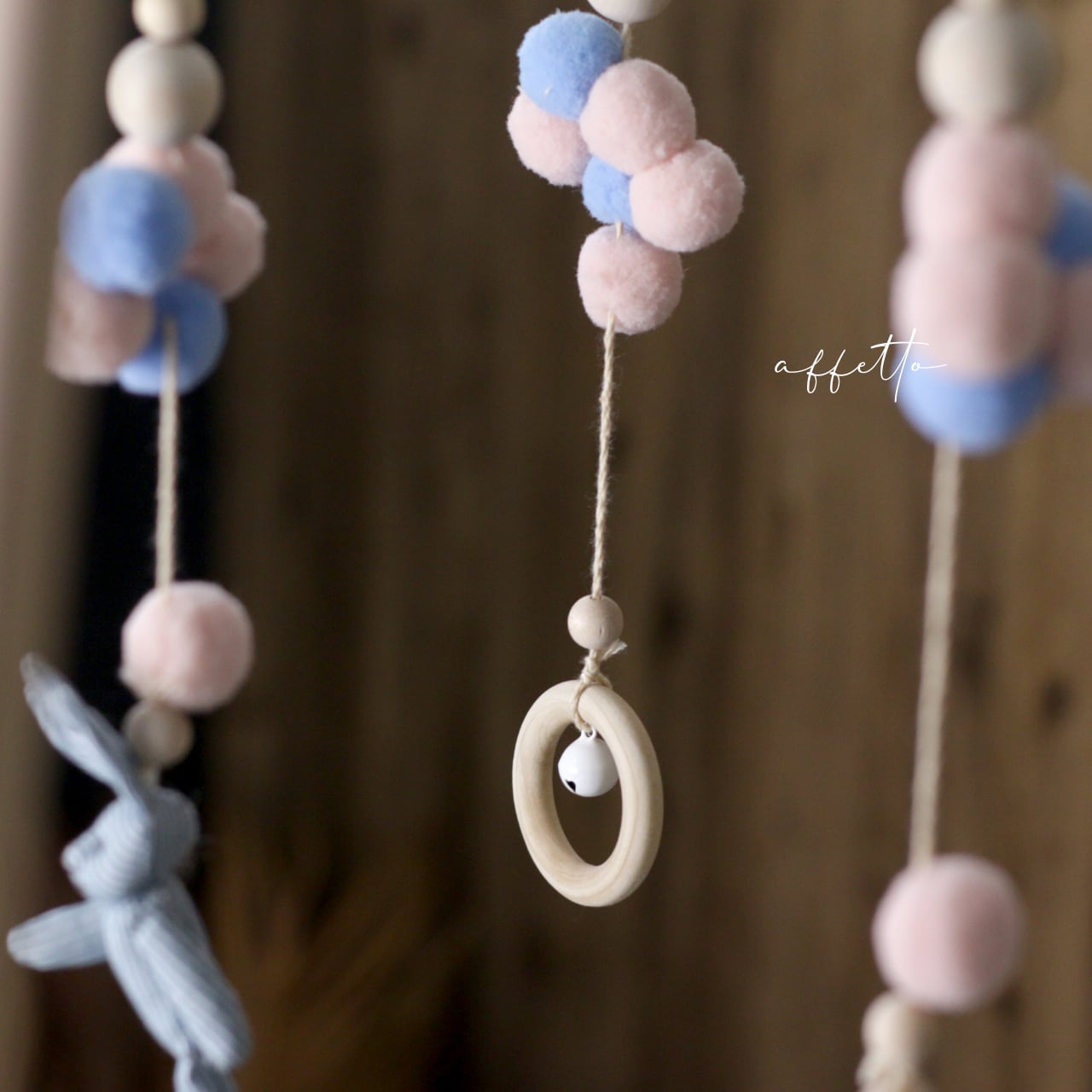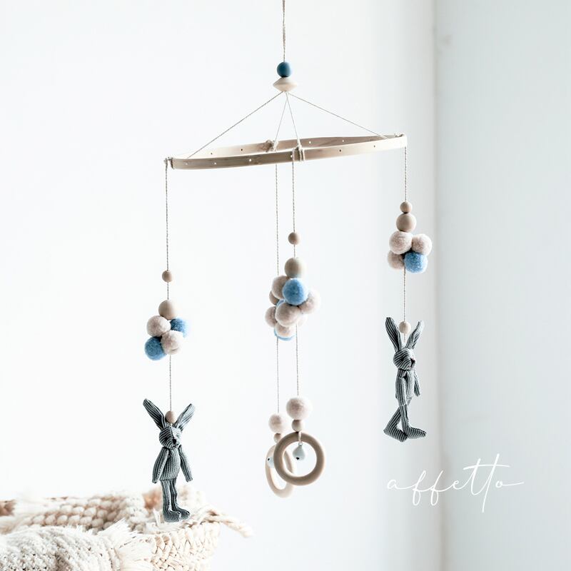 全2カラー【うさぎの吊り下げおもちゃ】ウサギ ベビーベッド 知育 ベビーグッズ 赤ちゃん 木のおもちゃ ベビーベッド ナチュラル ぬいぐるみ | affetto アフェット キッズ用品 and ベビー用品
